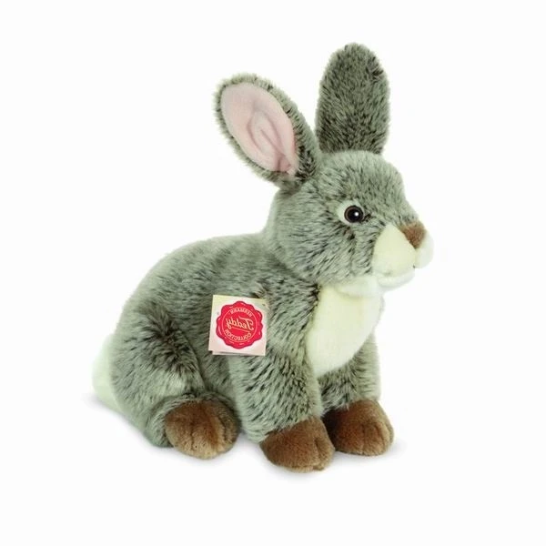 Deze mooie haas van Teddy Hermann is uitgevoerd in een grijze pluche stof. Hij zit lekker op zijn gemak te kijken wat je aan het doen bent. Zijn pootjes zijn van een zachte stof gemaakt. Hoogte (incl. oren): 24 cm.
