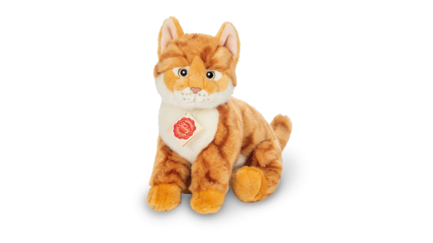Mooie rood getijderde kat van Teddy Hermann. Haar vacht is superzacht waardoor je deze kat wilt blijven aaien en knuffelen. Hoogte: 24 cm.