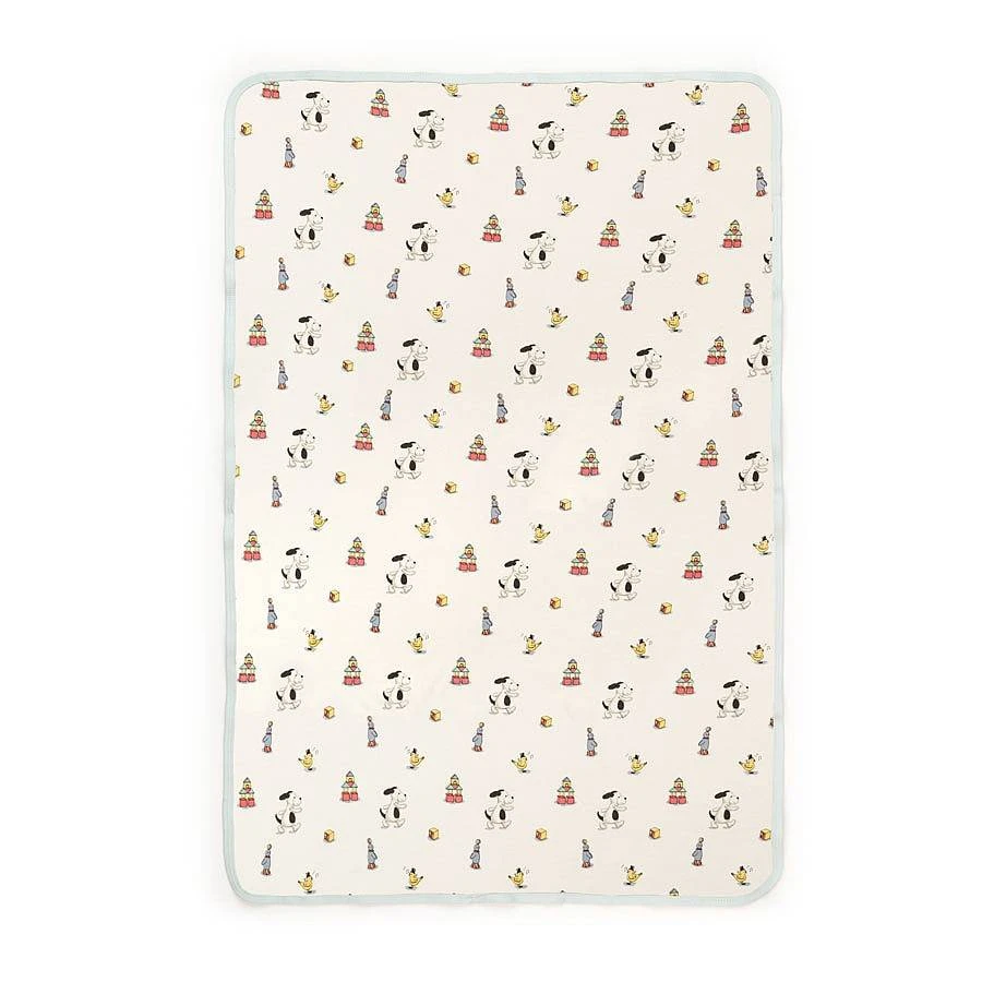 Vrolijke zachte deken van Jellycat. Door zijn afmeting makkelijk mee te nemen. Ideaal om te gebruiken als deken of speelkleed voor de allerkleinsten. Op de deken staat de afbeelding van Bashful Puppy, die ook als knuffel verkrijgbaar is. Uitgevouwen 70×90