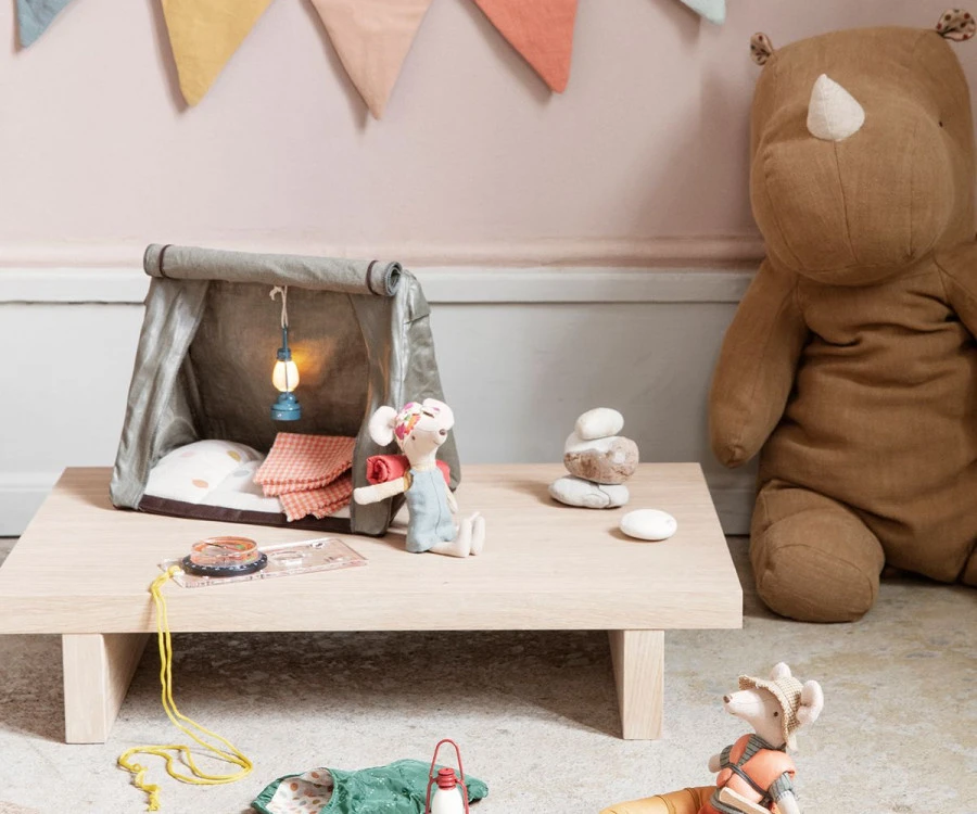 Verlicht het donker met deze miniatuur lantaarn. Vergeet niet om het licht uit te doen als onze vrienden naar bed gaan. De batterij kan door een volwassene worden vervangen.