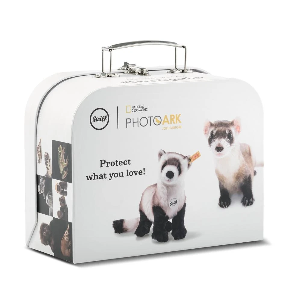 Afmeting buitenkant: 24x10x18 cm. Kijk ook naar onze National Geographic knuffels van Steif die in deze koffer passen en dan profiteer je van de combi-deal.